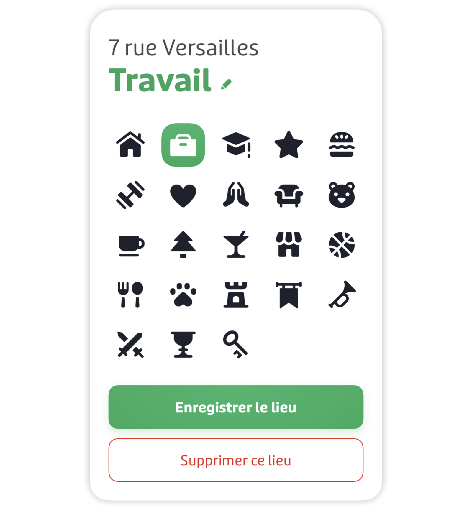 - Choisissez une icône et un nom pour votre nouveau lieu favori.