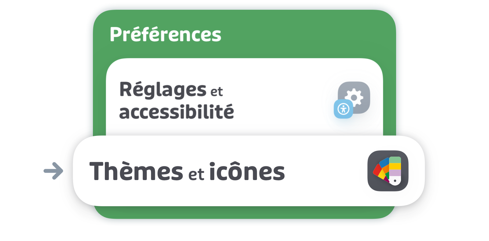 Personnalisez l'apparence de votre application en changeant la couleur de l'icône de l'application et/ou la couleur d'accent.