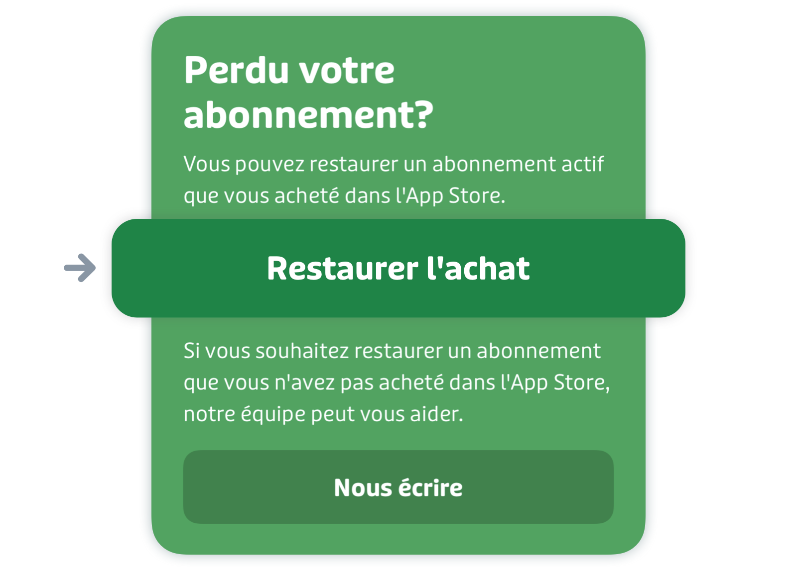 Cela peut arriver si vous changez de téléphone, ou si vous supprimez et réinstallez Transit. Voici comment restaurer votre abonnement Royale sur votre téléphone :